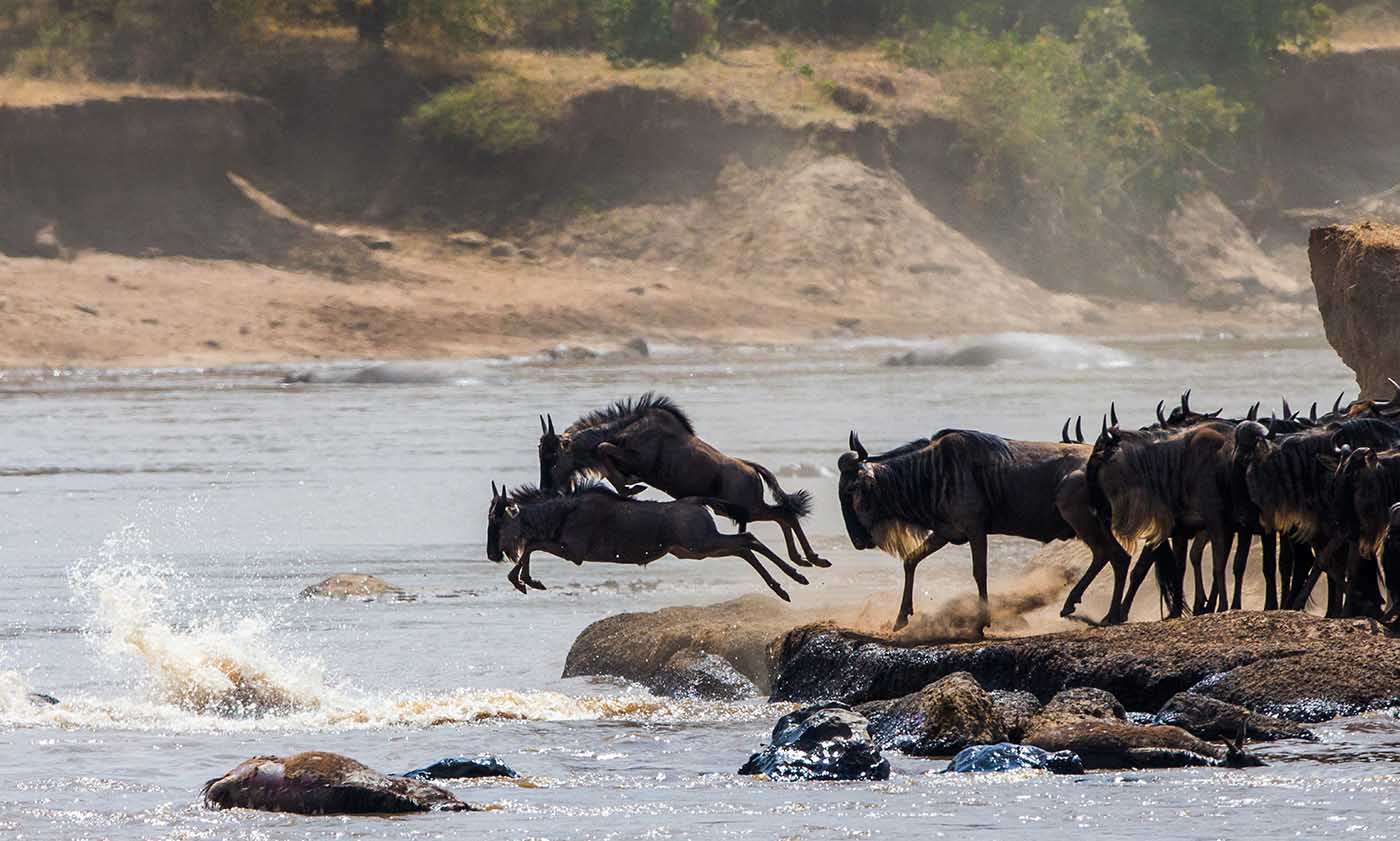 This is one of best Tanzania Wildlife Safari Holiday. Migration safari lets you witness the Great Wildebeest Migration. Over 2 million Wildebeest, Zebra and Gazelles move through the Serengeti and Masai Mara ecosystem in search of green pastures and safe calving ground. The biggest chance to see river crossings on Serengeti Wildebeest Migration Safari is around July and August when the wildebeest migrate from the Serengeti in Tanzania to the Masai Mara in Kenya or around September and October when they cross the way around. July marks the start of the Masai Mara River crossing as well as the mating season in the Serengeti. It is the time of the year when wildebeest herds begin moving faster in search of water and greener grass, making their way across the Grumeti and Mara River.