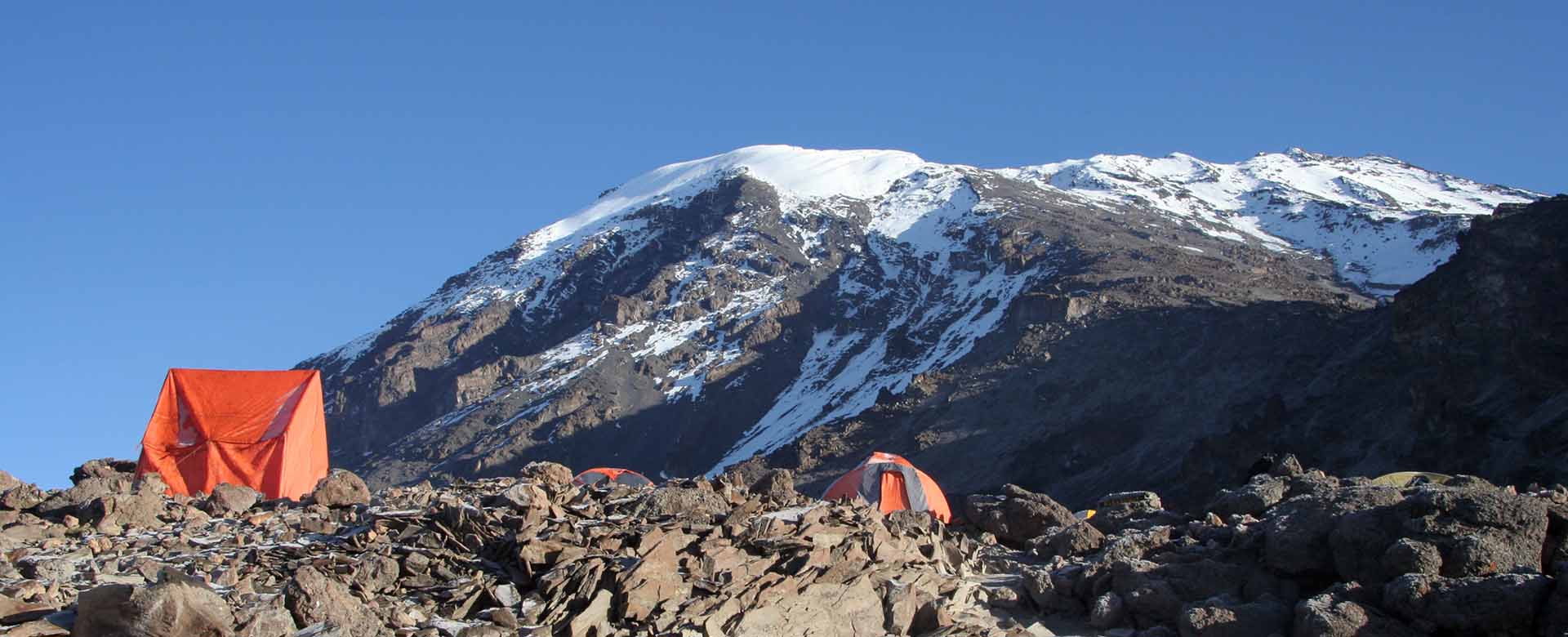 After breakfast, begin the hike to Barafu Camp. On the way to Barafu, view several of Kibo’s glaciers as well as the junction that connects the descent route, Mweka, with the Machame trail. During day four, hike by the Heim, Kersten and Decken Glaciers. Although the trail to Barafu passes through alpine desert with little vegetation, Barafu Camp offers stunning views of Kibo and Mawenzi peaks. Try to sleep after finishing dinner as you will wake before midnight for your summit hike.
